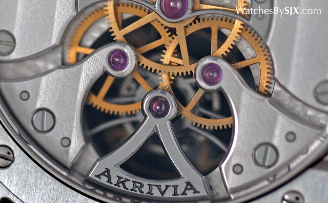 Akrivia est une marque horlogère indépendante naissante fondée par deux frères de l' Albanie. Bien que les jeunes - l'aîné est seulement 29 - les frères Rexhepi ont réussi à concevoir et fabriquer des mouvements remarquablement construits et magnifiquement finis. Leur plus récente et la plus compliquée, garde - temps est le Tourbillon Chiming Jump Hour.